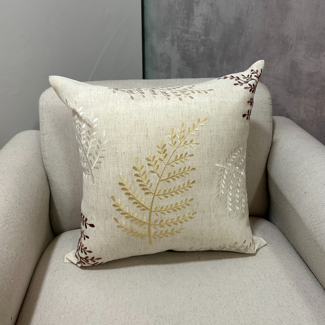 Capa Para Almofada Bordada Folha Dourada e Marrom 45x45