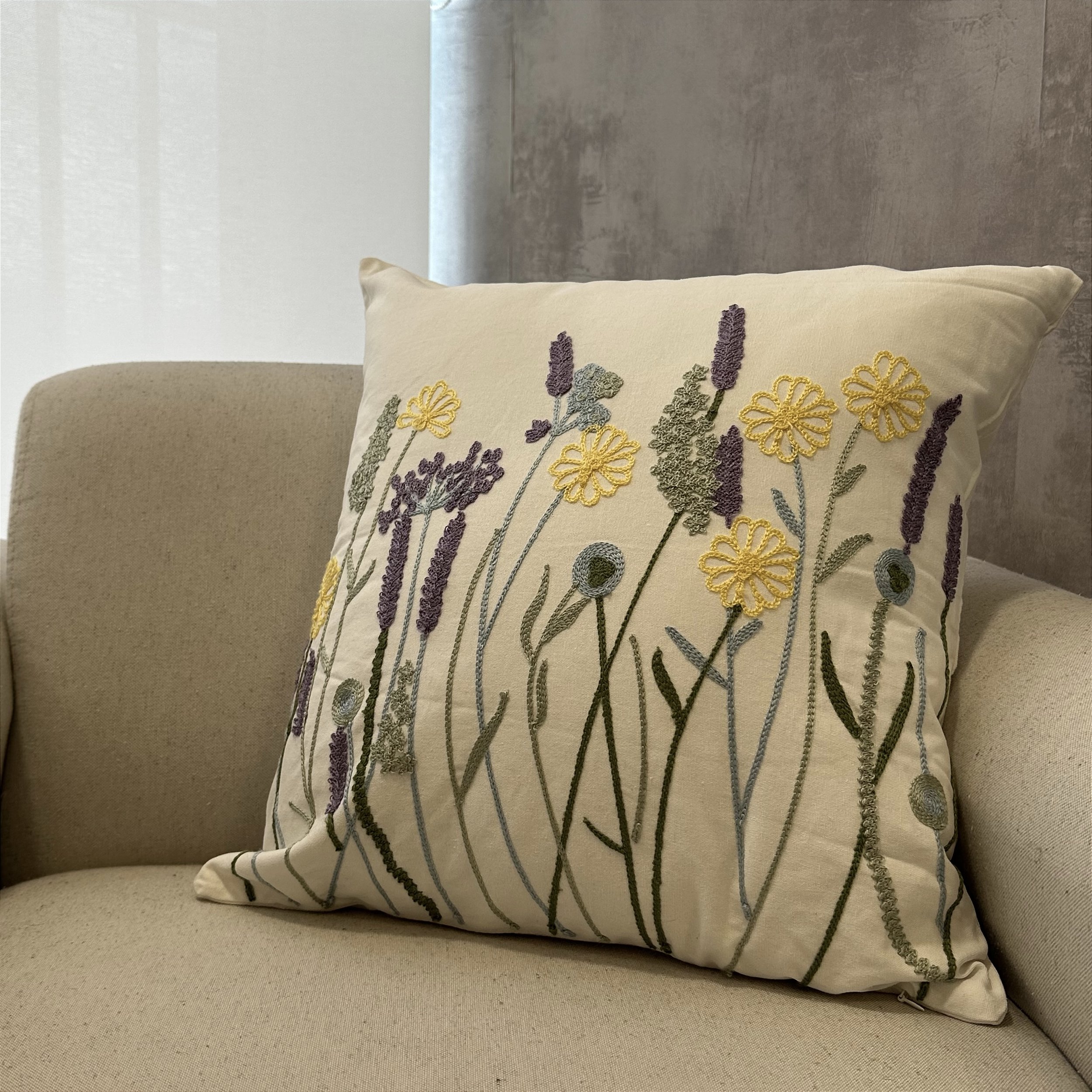 Transforme seu espaço com a Almofada Bordada uma peça que une o charme artesanal a um conforto inigualável. O bordado em relevo, com um design de plantas silvestres e flores delicadas, cria uma textura rica e um visual rústico chique que adiciona vida e personalidade a qualquer sofá, poltrona ou cama.