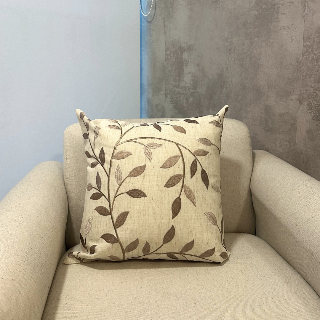 Capa Para Almofada Estampada Folhas Bege e Marrom 45x45