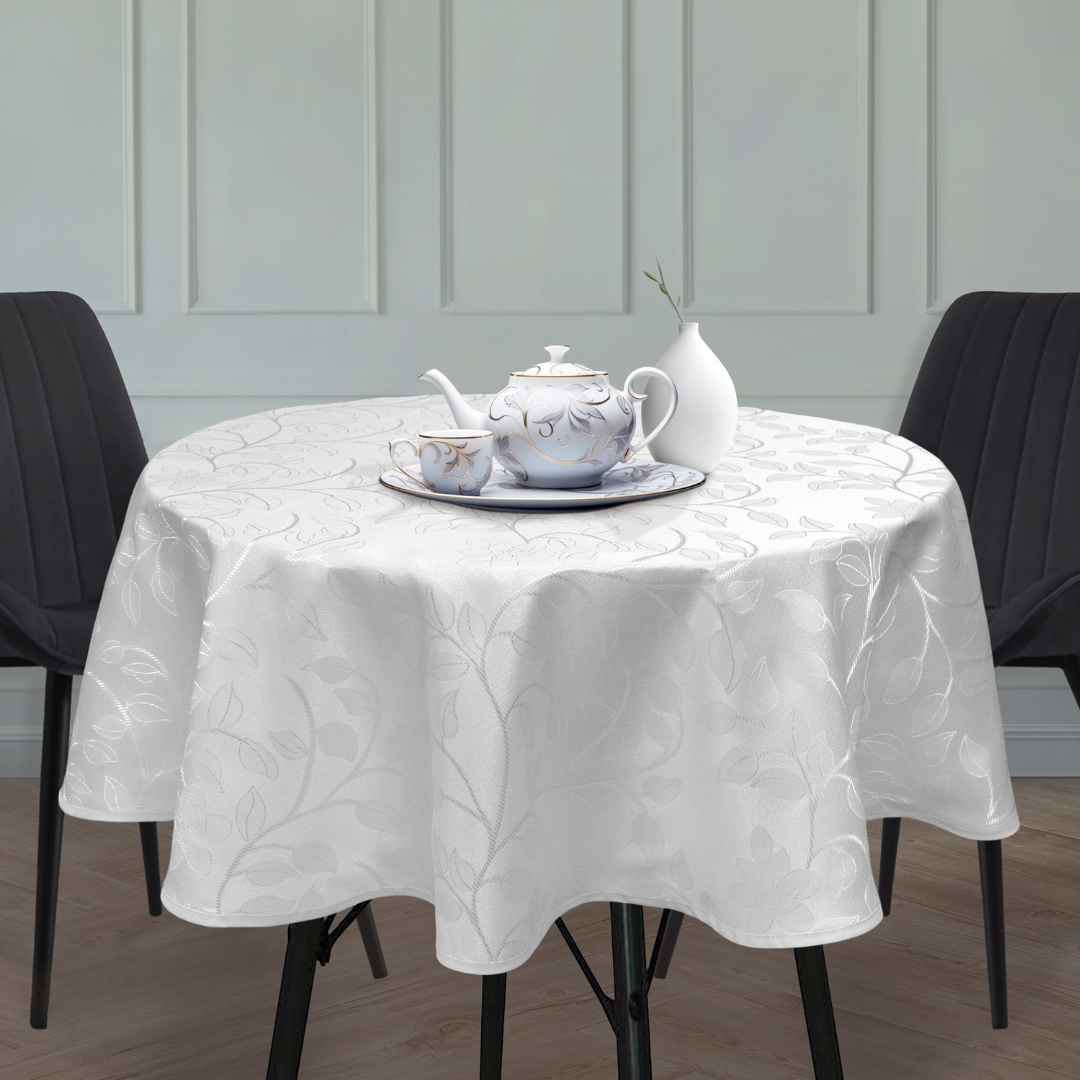 Toalha de Mesa Branca Jacquard IL Mila Redonda 1,40 Metros - 4 Lugares